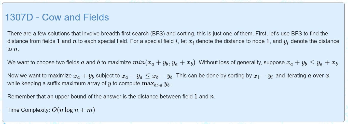 Xa+Yb 가 가장 클 때를 찾아야하는 이유는 Xa+Yb+1 이 노드 1부터 n 까지 (노트 a, b를 경유하는) 최단거리이기 때문