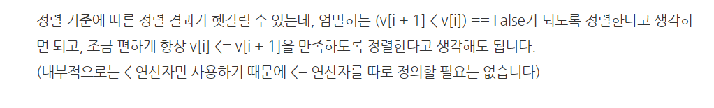 정렬을 수행하게 되면 왼쪽부터 차례대로 놓이게 됨 모든 stl은 (작은 거) < (큰 거) 가 되게 비교함수를 작성하면 됨
