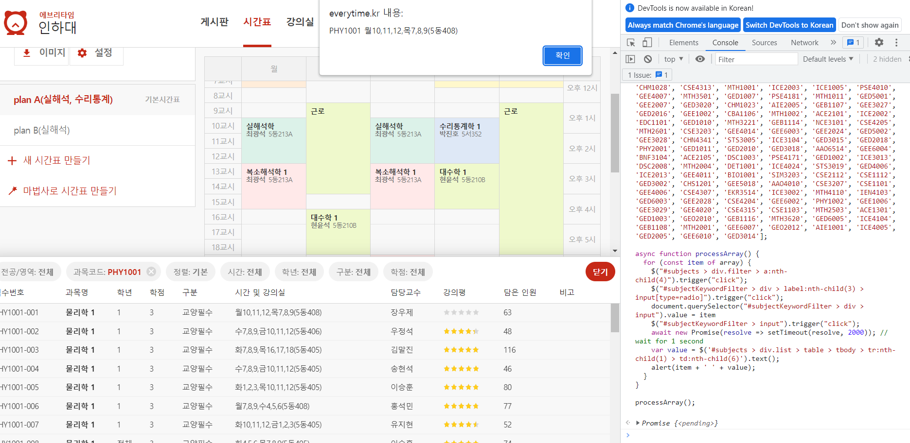 에타 과목코드로 시간 및 강의실 조회 부분 자동화아무거나적어~ 2023. 3. 6. 01:36