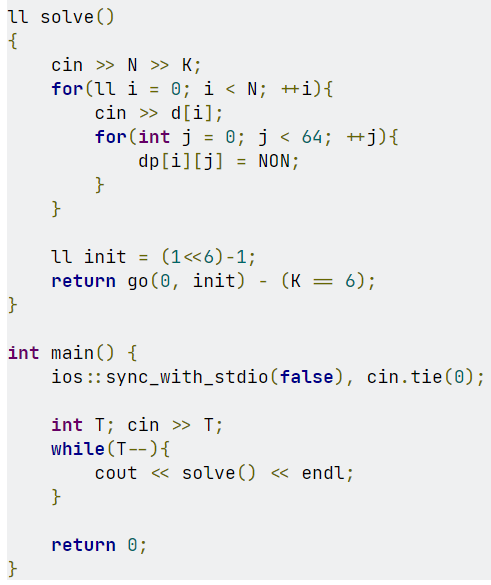 배열의 원소의 개수가 2 ⋅ 10⁵ 이고 각 원소는 0~63 까지의 값을 가질 수 있으므로 다음과 같이 dp를 정의하면 된다.