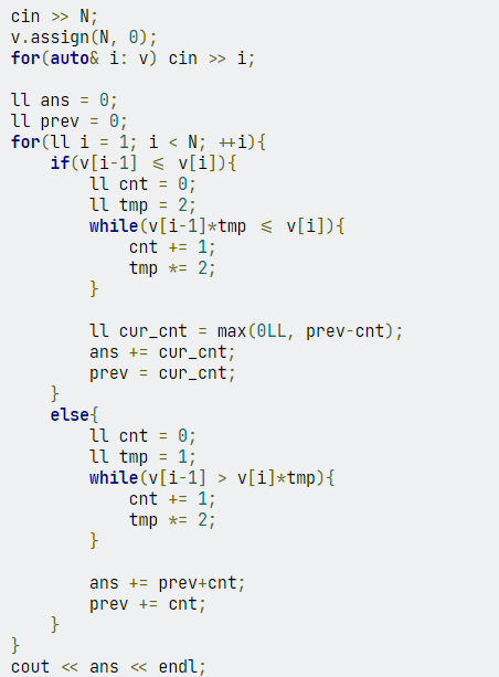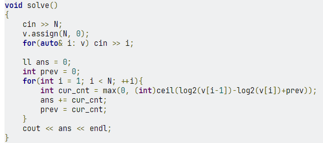이때 구하는 것이 음수일 수는 없으므로 구 = max(0, ceil(lg a - lg b + x))