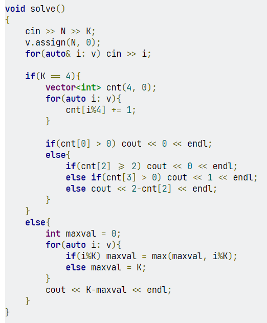 배열의 원소가 k의 배수가 되게 하는 최소 연산 횟수를 구하면 된다ii) k = 4 일때