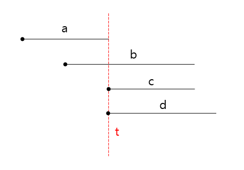 위 그림에서 실선 t 와 만나는 강의의 개수를 $U(t)$라고 하자