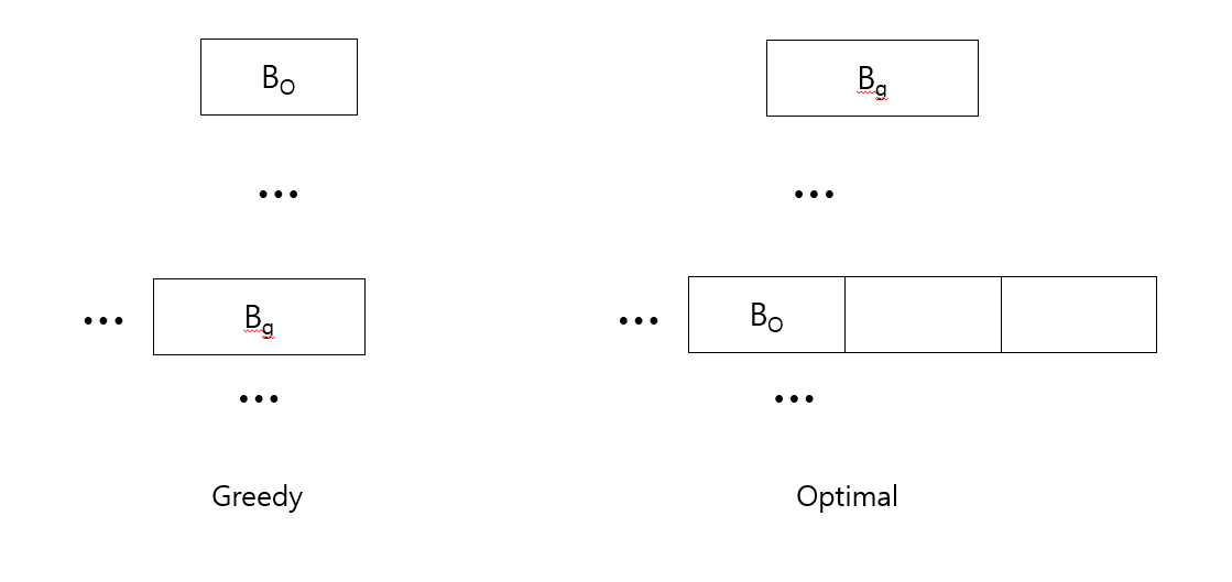 greedy 알고리즘에서 $B_{g}$를 배열할 시점에 $B_{o}$ 블록도 아직 배정하지 않은 상태이다