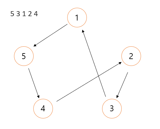 - 각각의 사람이 누구에게 선물을 주어졌는지 주어진다. 이때 0 은 아직 선물을 주지 않은 사람이다