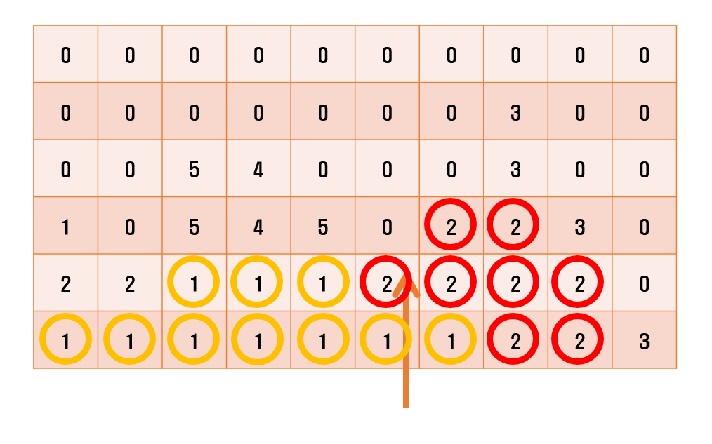 - 같은 숫자가 $k$개 이상 인접하면 사라지고 아래로 내려온다. 최종 모습은?