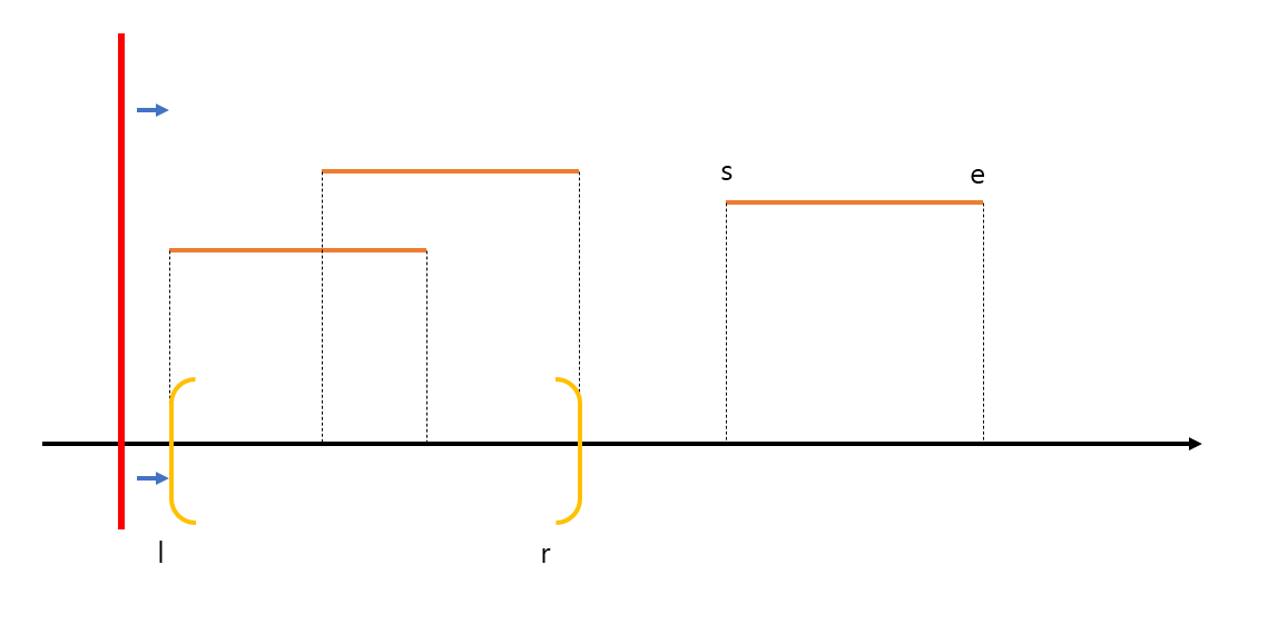 선분들이 하나의 연속된 그룹(두 선분 사이에 빈틈이 없으면 연속이라 하자)인지 아닌지를 판단한다 $O(n)$i) $s \leq r$이면 연속