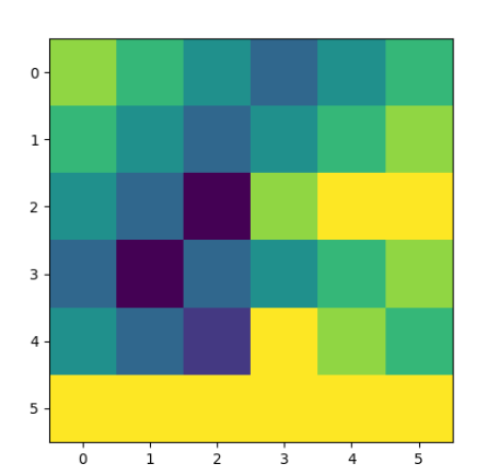 12345678910111213import sysimport matplotlib.pyplot as pltf = open("data_visualization", 'r')data = f.read().split("\n\n")f.close()for fig_num, d in enumerate(data):d = list(map(lambda row: list(map(int, list(row))), d.split()))plt.figure(figsize=(5, 5))plt.imshow(d)plt.show()#plt.savefig(f"{fig_num}")csdata_visualization.txt