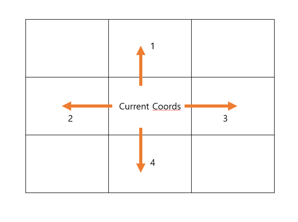 0 ≤ row < n & 0 ≤ column < n - 움직이려는 칸이 size 이하?