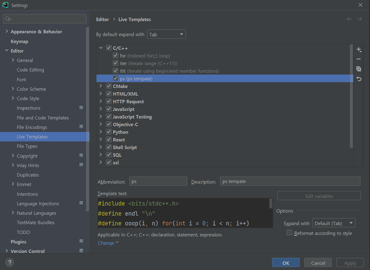 clion 코드 조각 불러오기(Live template)아무거나적어~ 2021. 10. 8. 01:18